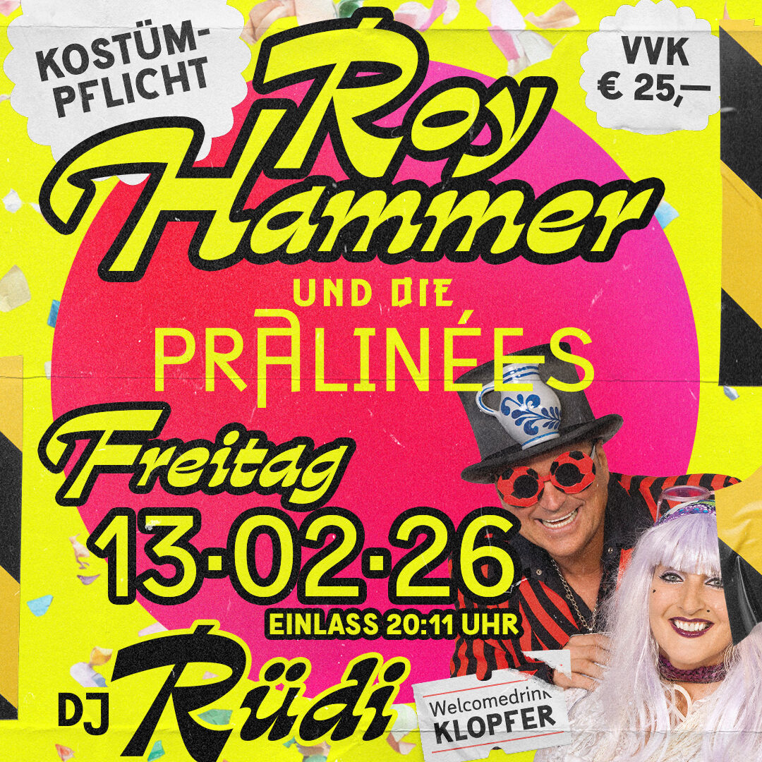 Alaaf, liebe Jecken! 🎭 Am 13.Februar 2026 wird’s noch bunter im Fortuna Irgendwo, wenn wir „Alaaf“ rufen und uns mit Zwangsjeck Trälleräää und Roy Hammer & the Pralinées in die Karnevalsmusik stürzen! Kostümpflicht ist an diesem Abend ein absolutes Muss, also lasst eurer Kreativität freien Lauf und zeigt uns eure ausgefallensten Verkleidungen!